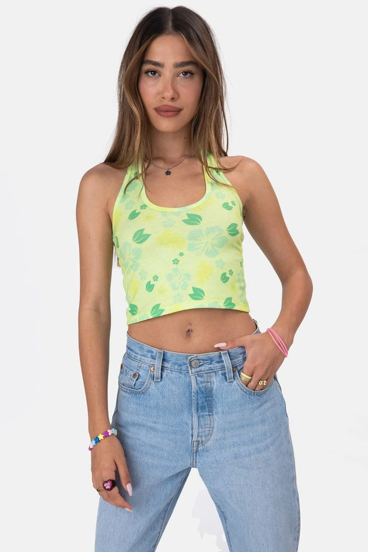 - It’s sub-lime. Lightweight halter crop top in floral print all-over with a scoop neck.