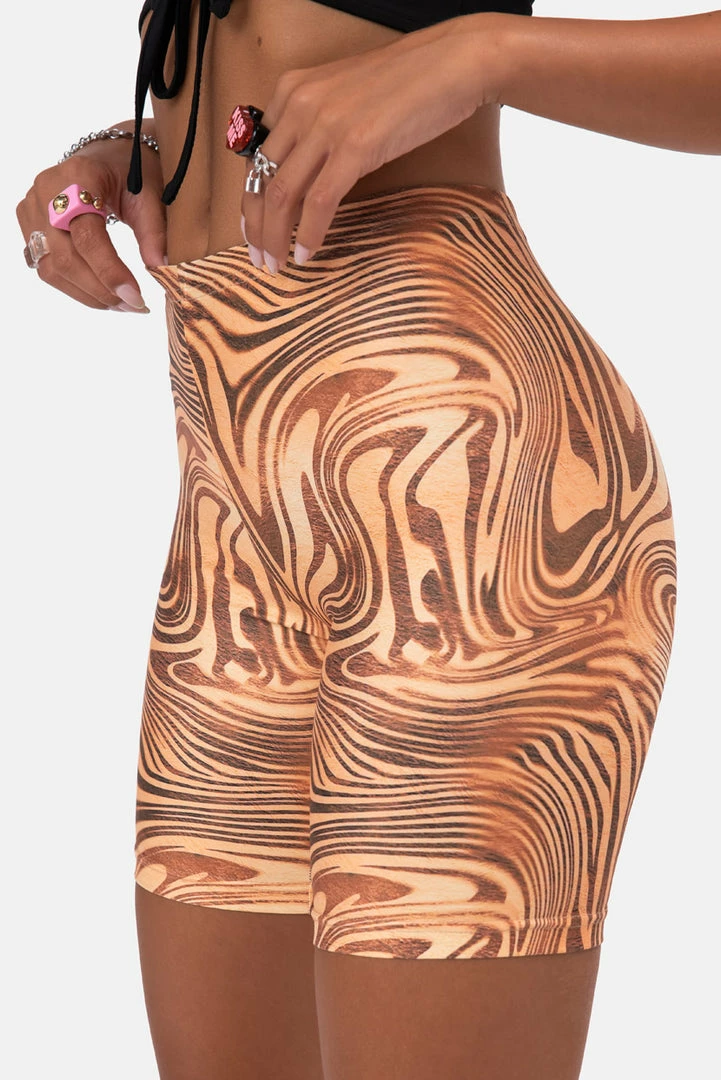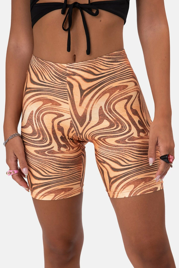 - I don’t do mundane. High waisted stretchy biker shorts in retro style print all-over with an elastic waistband.