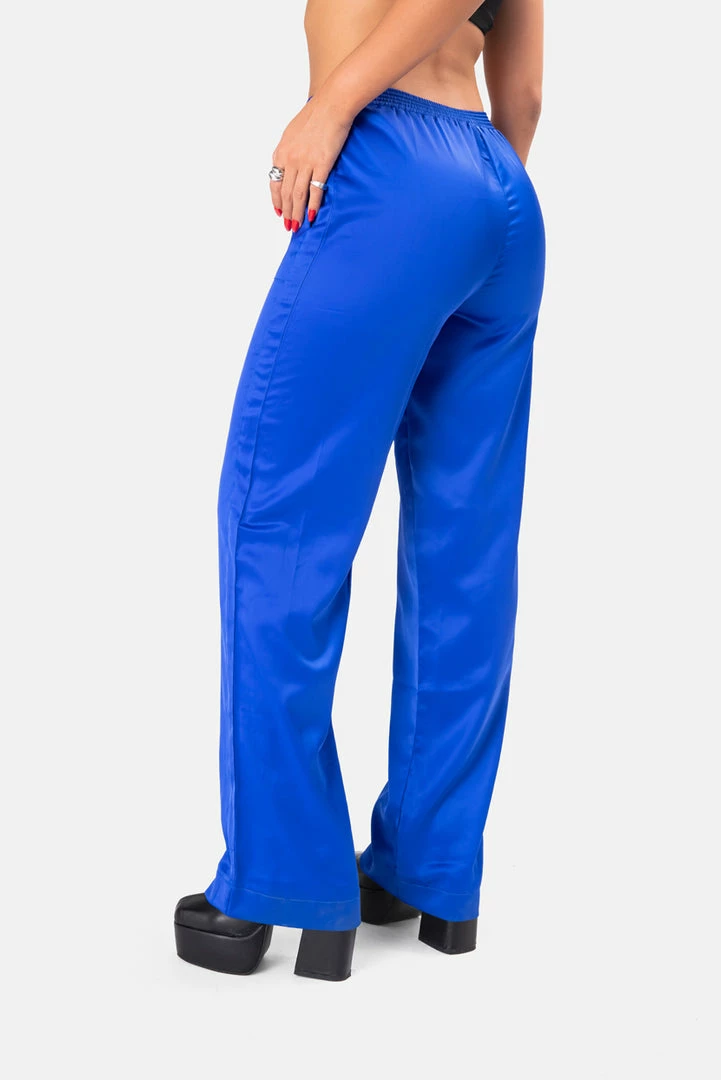 - Not today, satin. Mid rise, wide fit pants in satin finish featuring an elastic waistband and front pockets.