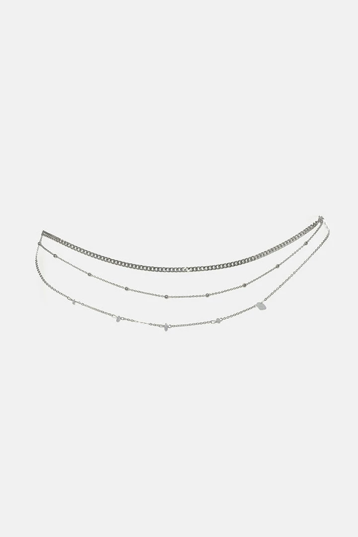- A festive bestie. Triple-layered belly chain in a metallic finish with an adjustable lobster clasp closure.