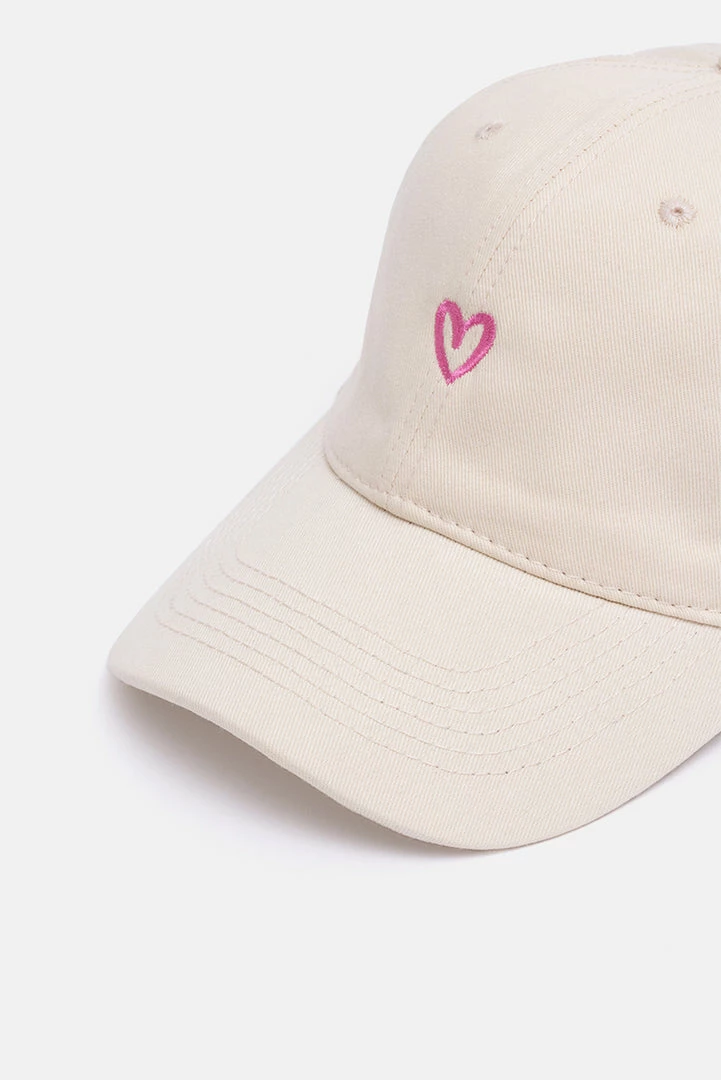 - Love to love. Classic baseball cap with heart shaped embroidery and an adjustable strap in the back.