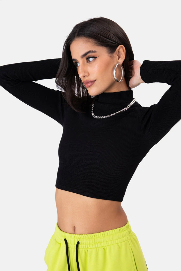 - Spicing up the daily. Soft and seamless cropped top in a ribbed and stretchy fabric with a high neck and long sleeves.