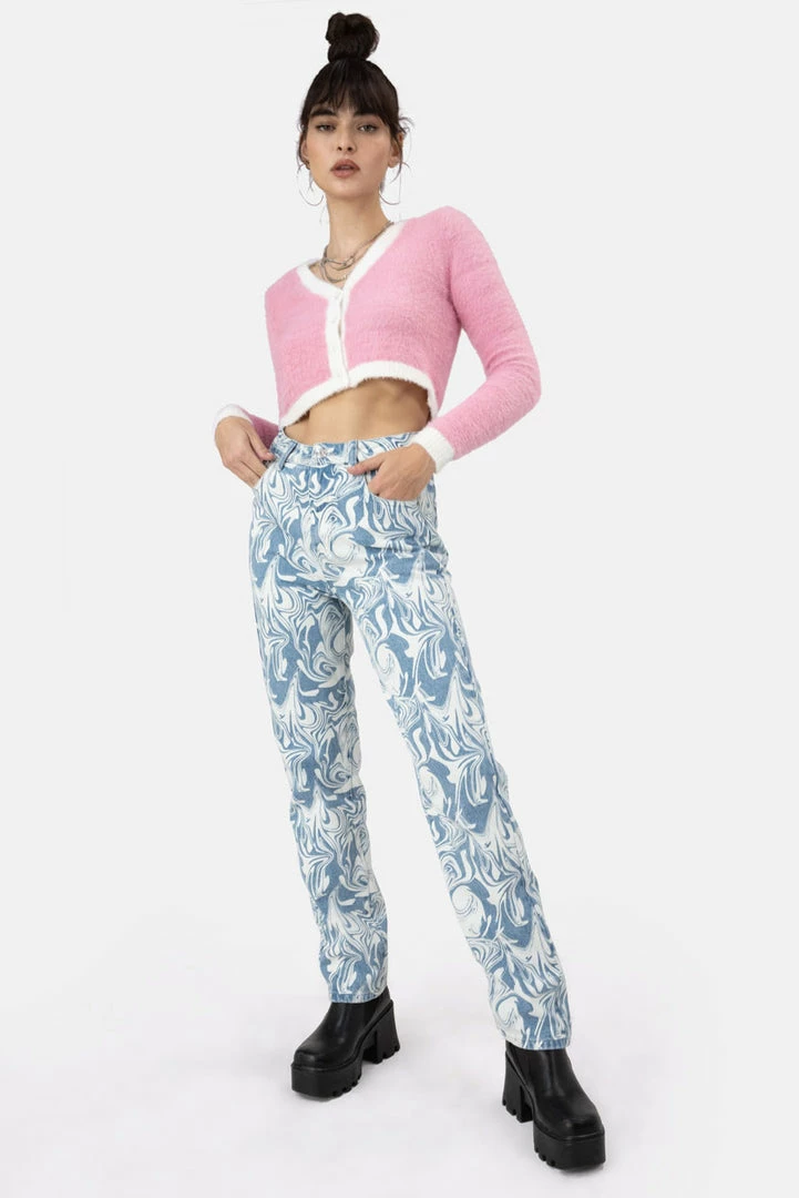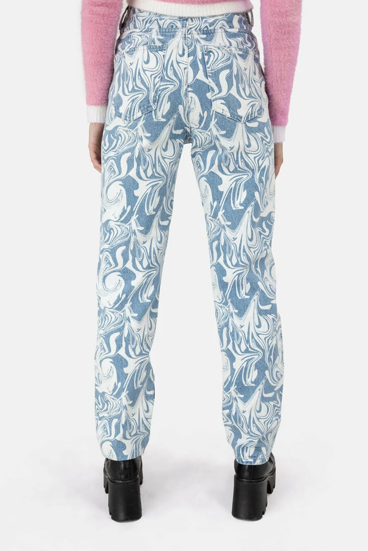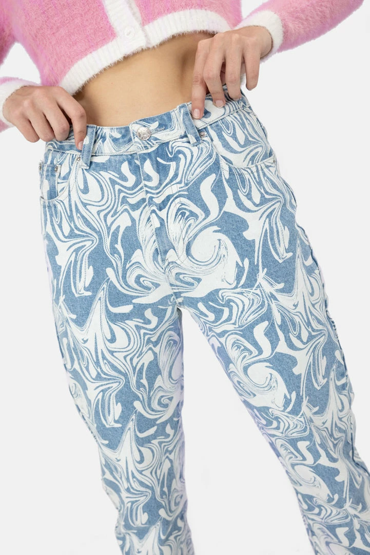 - ICYMI, marble print is hella happening right now. High waisted, semi-washed jeans in a unique all-over marble print, with button and zip closure, 5 pocket design and belt loops.