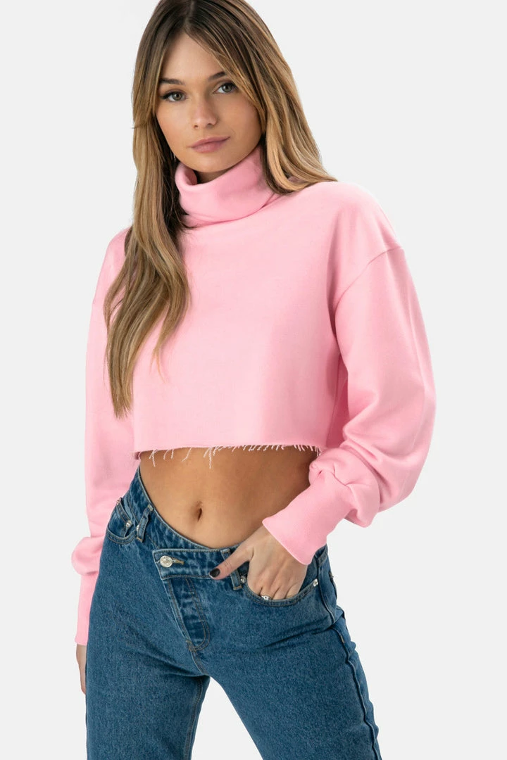 - Fame, I’m gonna live in this top forever! Loose-fitting cropped sweatshirt with a mega-warm chunky turtleneck, dropped shoulder line, fitted cuffs and raw-cut hem. Make a move on it