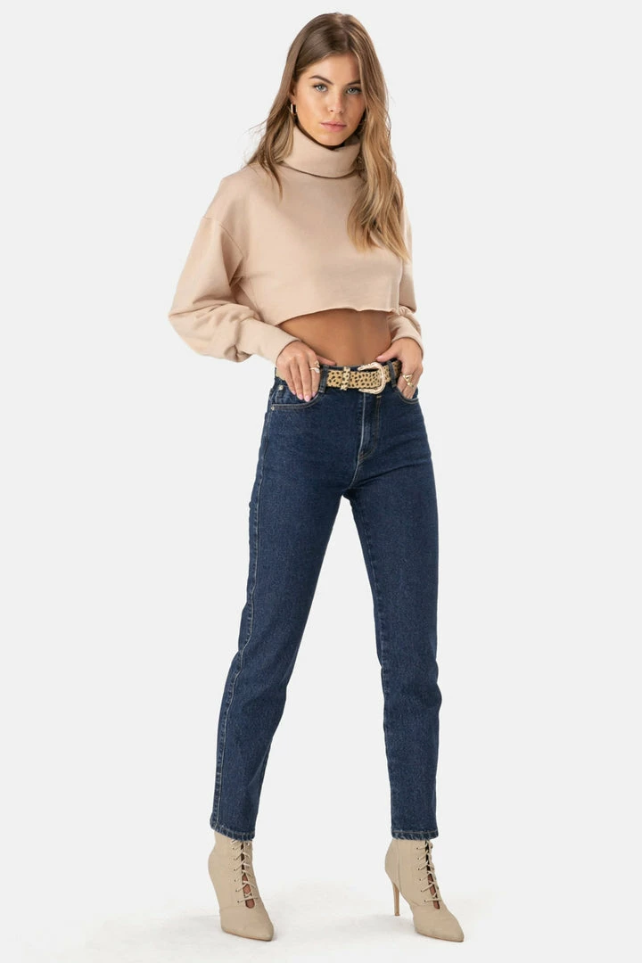 - Fame, I’m gonna live in this top forever! Loose-fitting cropped sweatshirt with a mega-warm chunky turtleneck, dropped shoulder line, fitted cuffs and raw-cut hem. Make a move on it