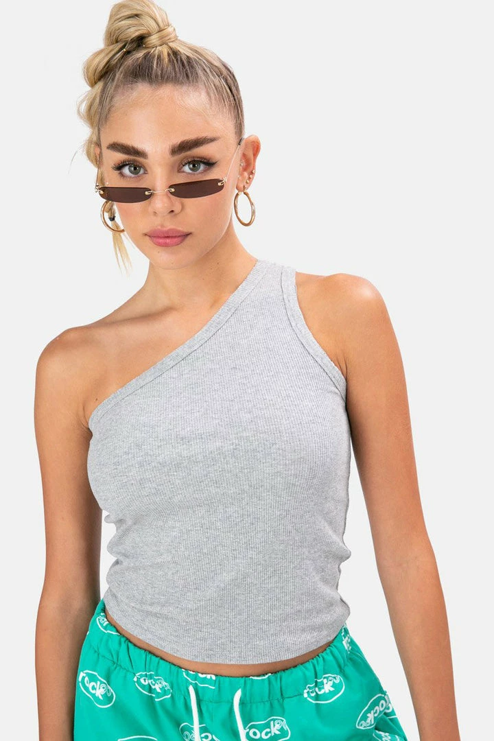 - There’s only one way to go about this. Ribbed, stretchy and mega-comfy one-shoulder tank top. Add to cart.