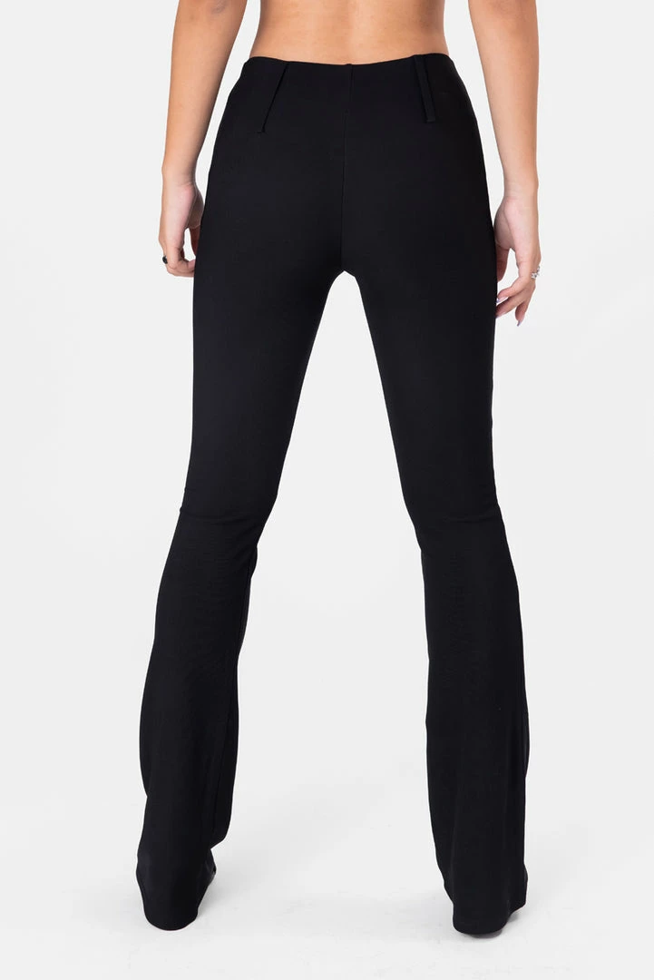 - Got the magic touch. Fine rib, stretchy flared pants in high waisted fit featuring an elastic waistband, wide belt loops and bell-bottom.