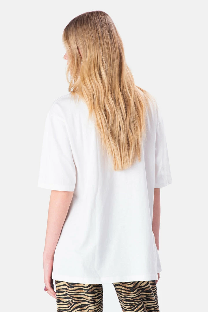 - Supa dupa fly. Oversized T-shirt with graphic print on the front, ribbed crewneck, dropped shoulder line and short sleeves.