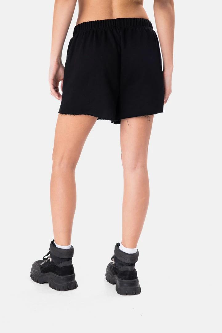 - Casual is chic. Comfy sweat shorts in a relaxed fit featuring an elastic waistband with drawstring and raw-cut hem.