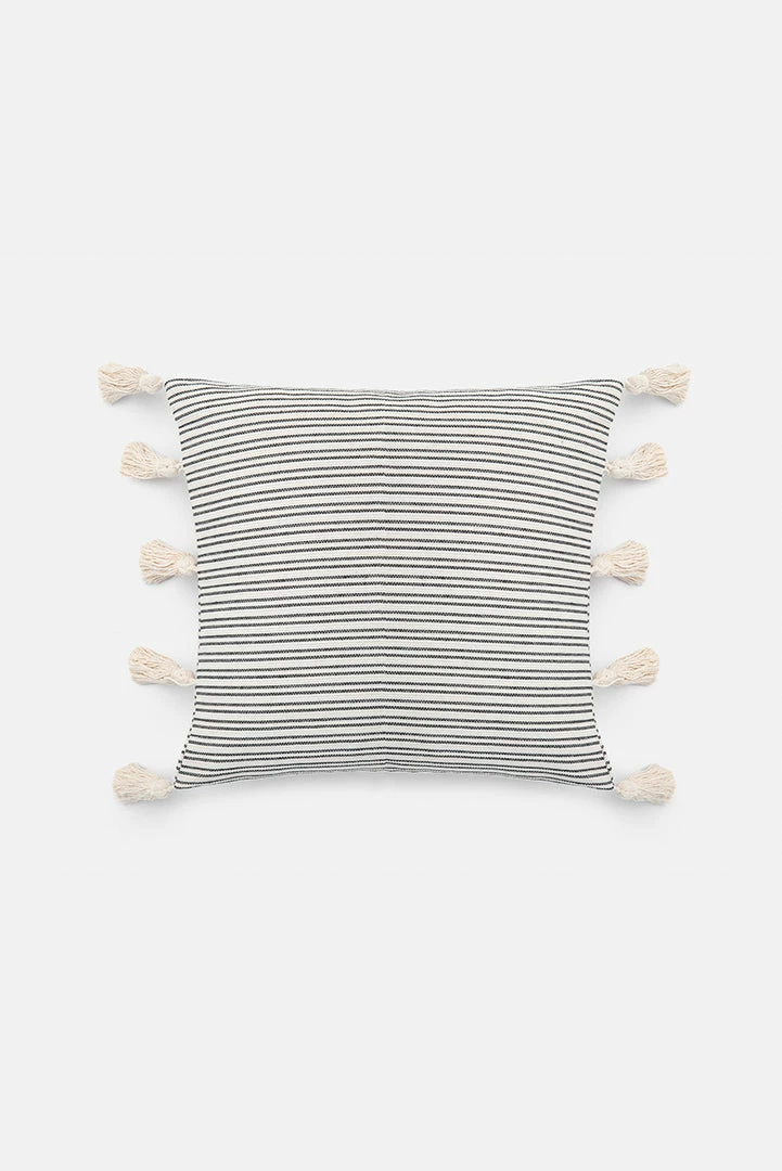 - Straight into your cart. Square throw pillow cover in all-over stripe print canvas fabric with tassel embellishments.