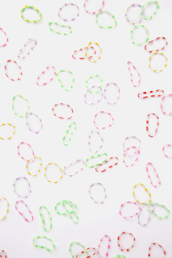 - Let’s get playful. Set of silicon hair ties in colorful neon design.