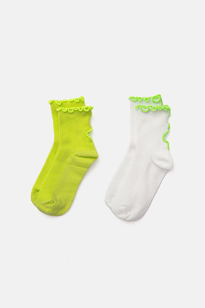 - Happy feet. Set of 2 ribbed ankle socks with stylish lettuce trim