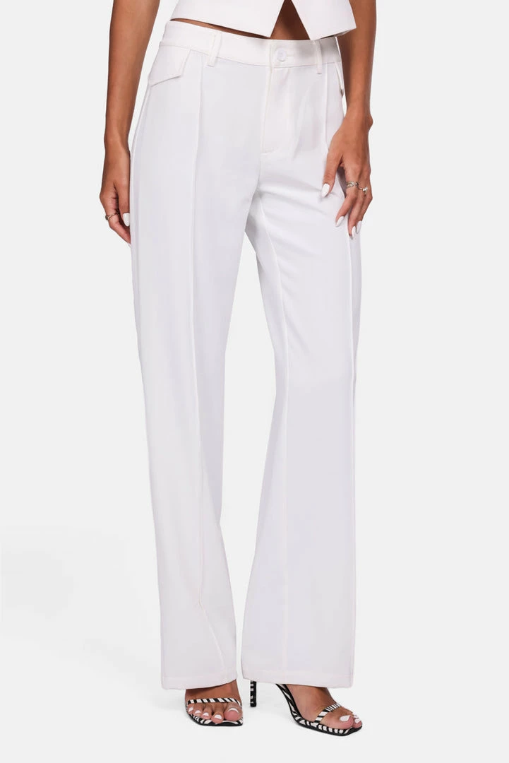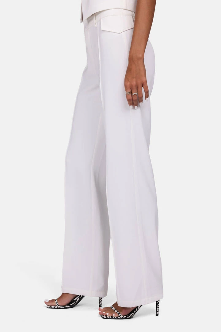 - Bossgirl energy. Lightweight tailored pants in wide fit with button and zip closure, faux pockets, belt loops and tonal stitch detail.