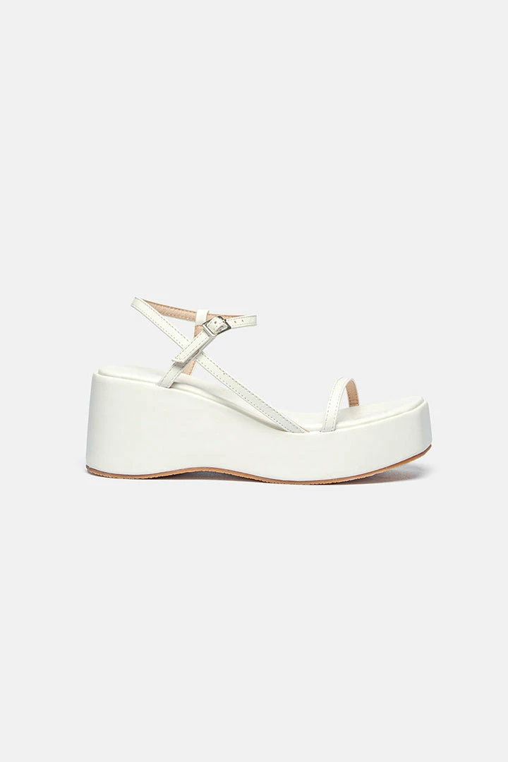 - High, how are you? Chunky faux leather sandals featuring thin straps with pin buckle closure, open square toe and platform sole.