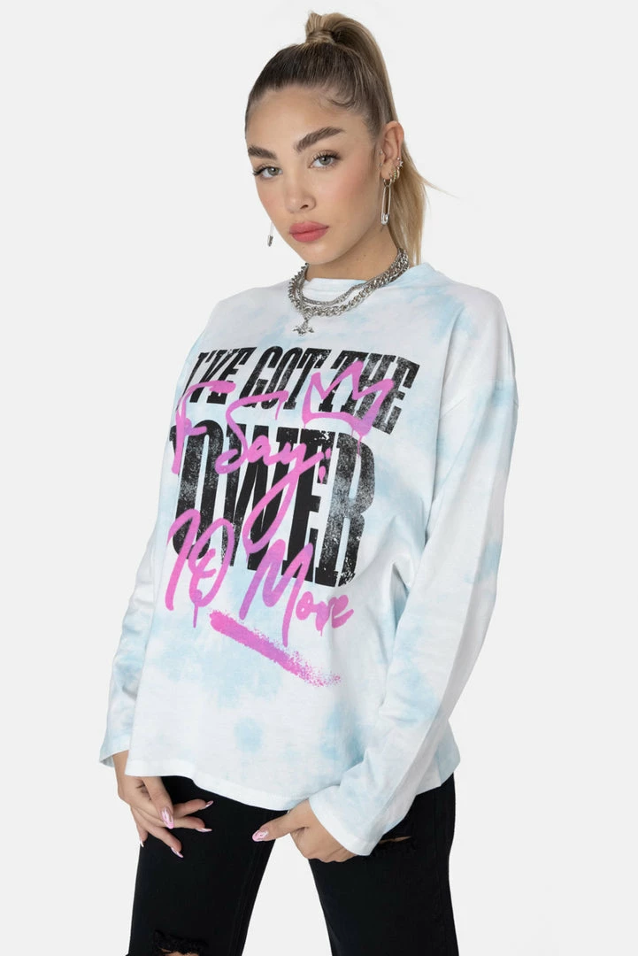 - WE’VE GOT THE POWER TO SAY NO MORE. All-over tie-dye t-shirt with long sleeves and a graphic print on the front. Specially created in solidarity with the International Day for the Elimination of Violence Against Women.
