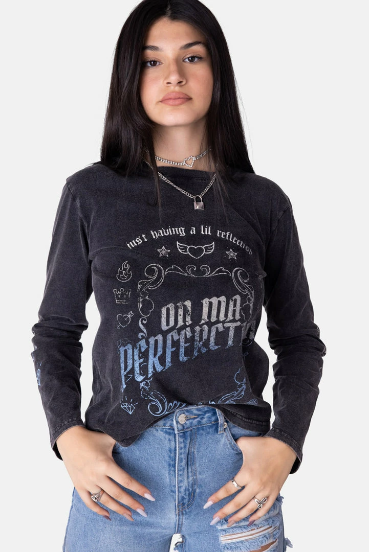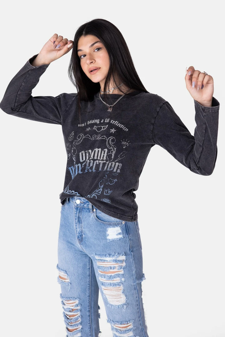 - Just a βlil reflection on your perfection. Classic fit, long sleeves t-shirt in a wash finish with crewneck and a vintage-style graphic print on both the front and the sleeves.