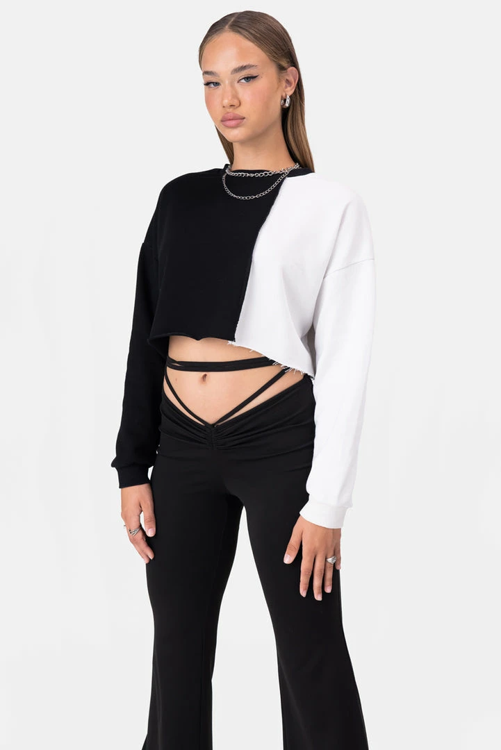 - Vibe on your own frequency. Cropped sweatshirt in color-block design and a loose fit with long sleeves. Including crewneck, dropped shoulder line, fitted cuffs and raw-cut hem.
