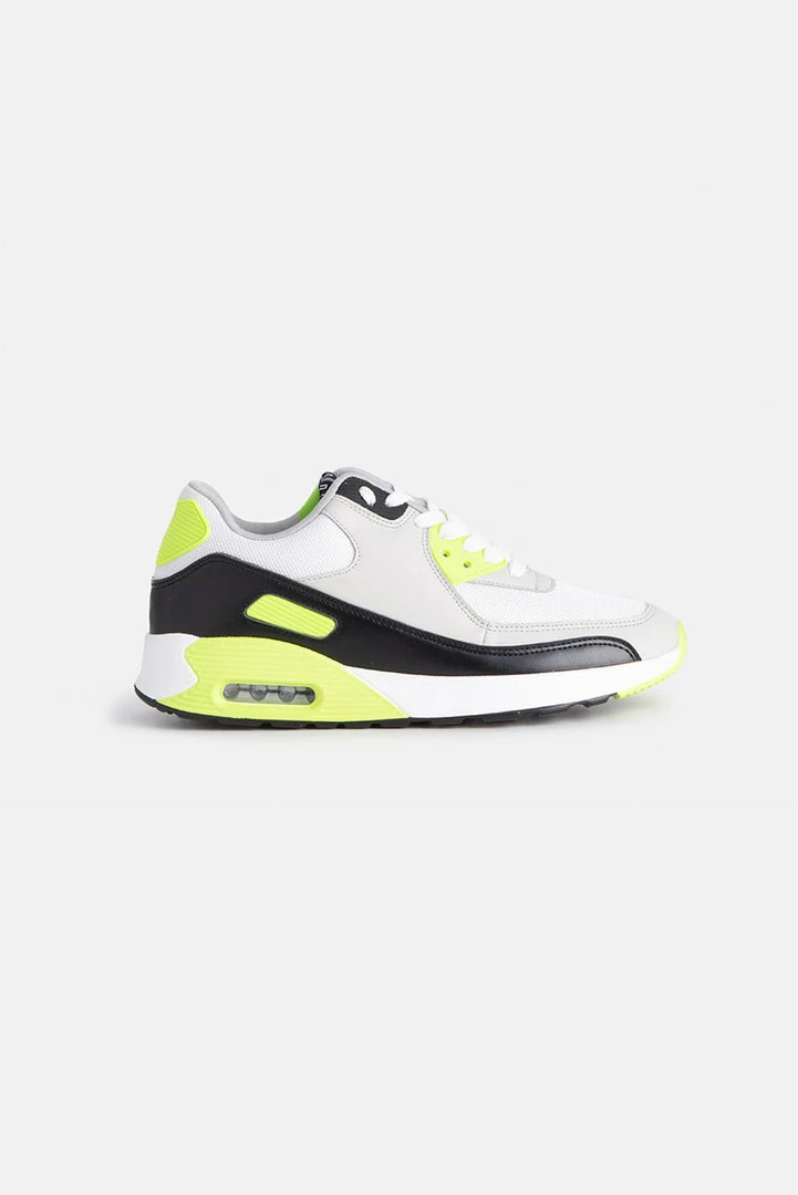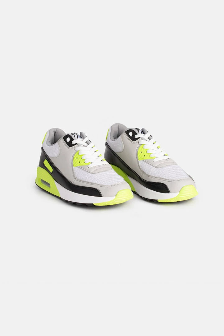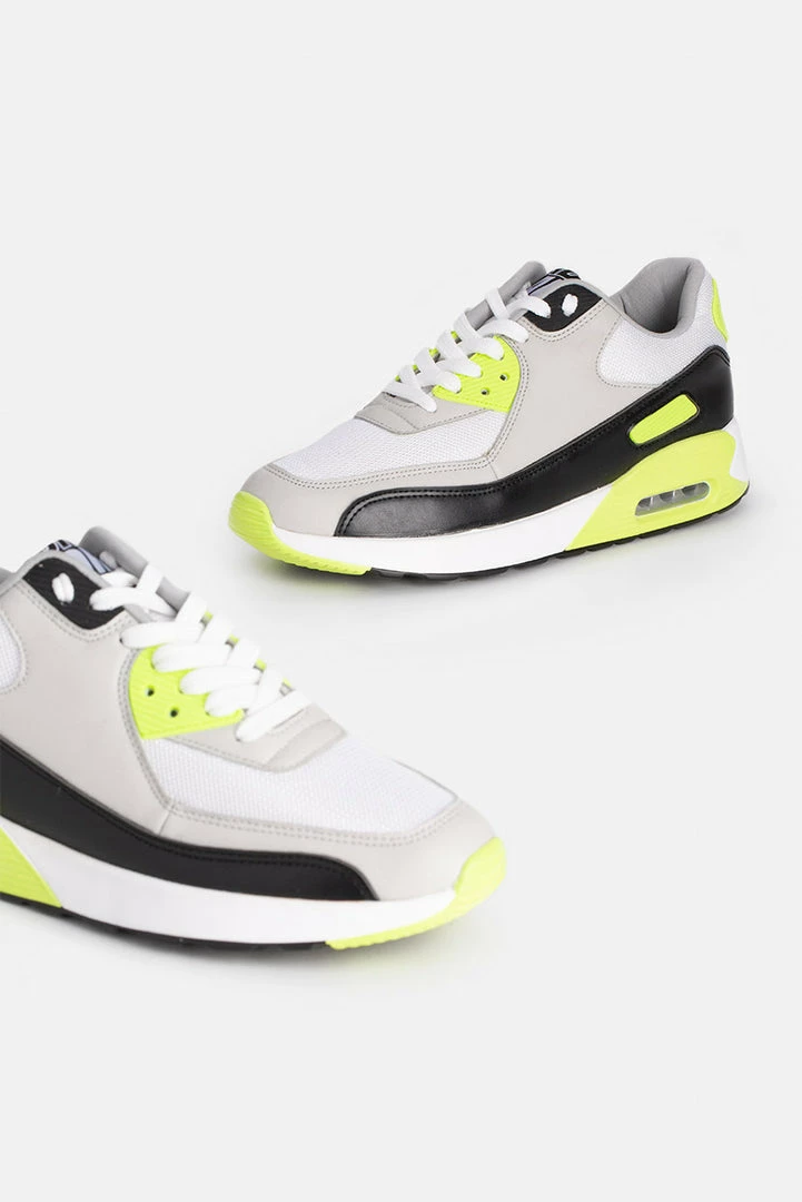 - 50% retro, 50% fresh swag. These faux leather sneakers feature retro-style paneled design with neon detailing, lace-up closure and platform sole. A 100% YASSS.