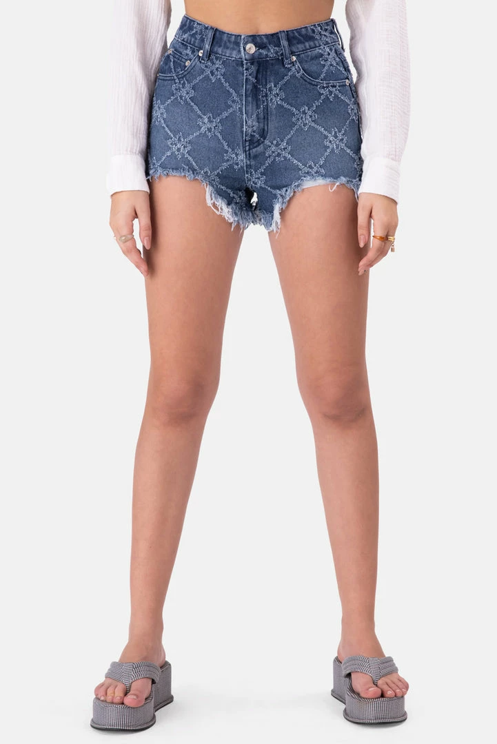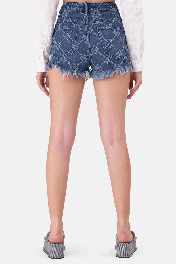New ❤️ Adika OUTLET Adorn Textured Pattern Denim Shorts 😍