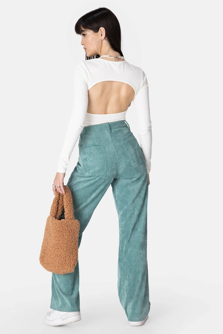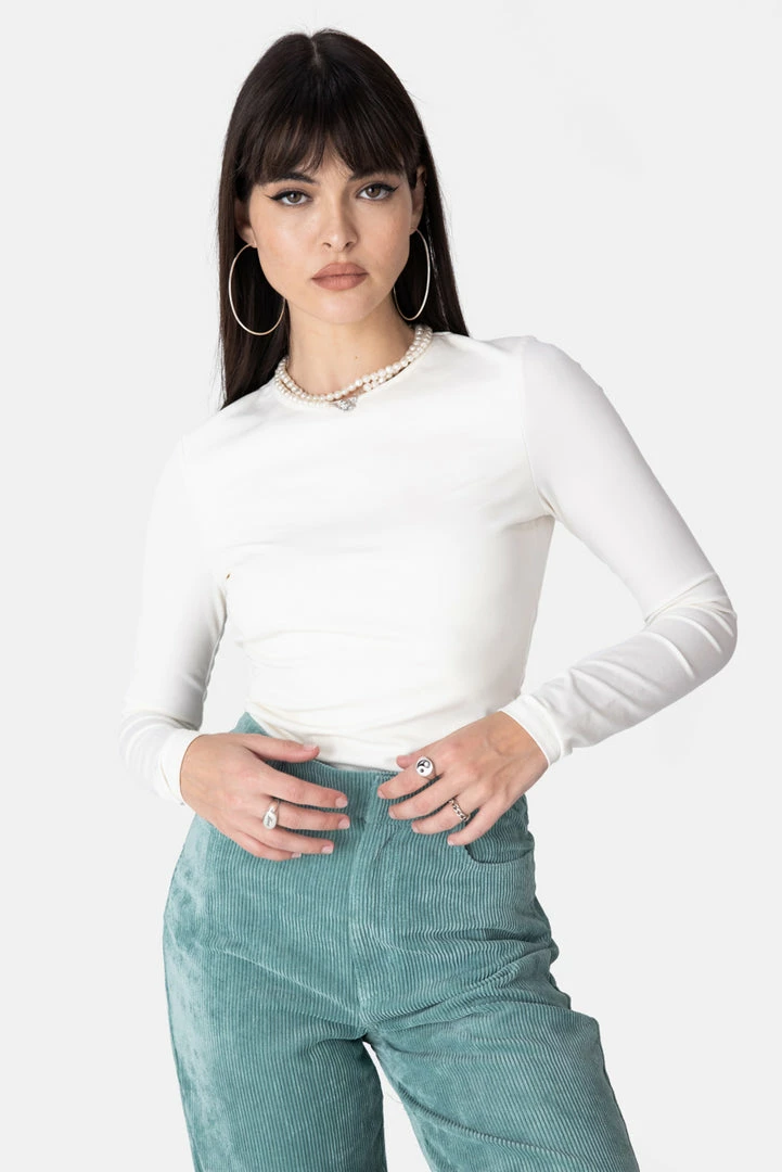 - Can’t live without it. Stretchy t-shirt with cut-out detail in the back, round collar and long sleeves. Bingo.
