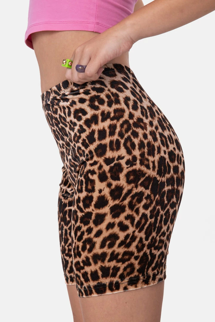 - What a beast. Stretchy biker shorts in leopard print all-over velvet fabric with an elastic waistband in a high waisted fit.