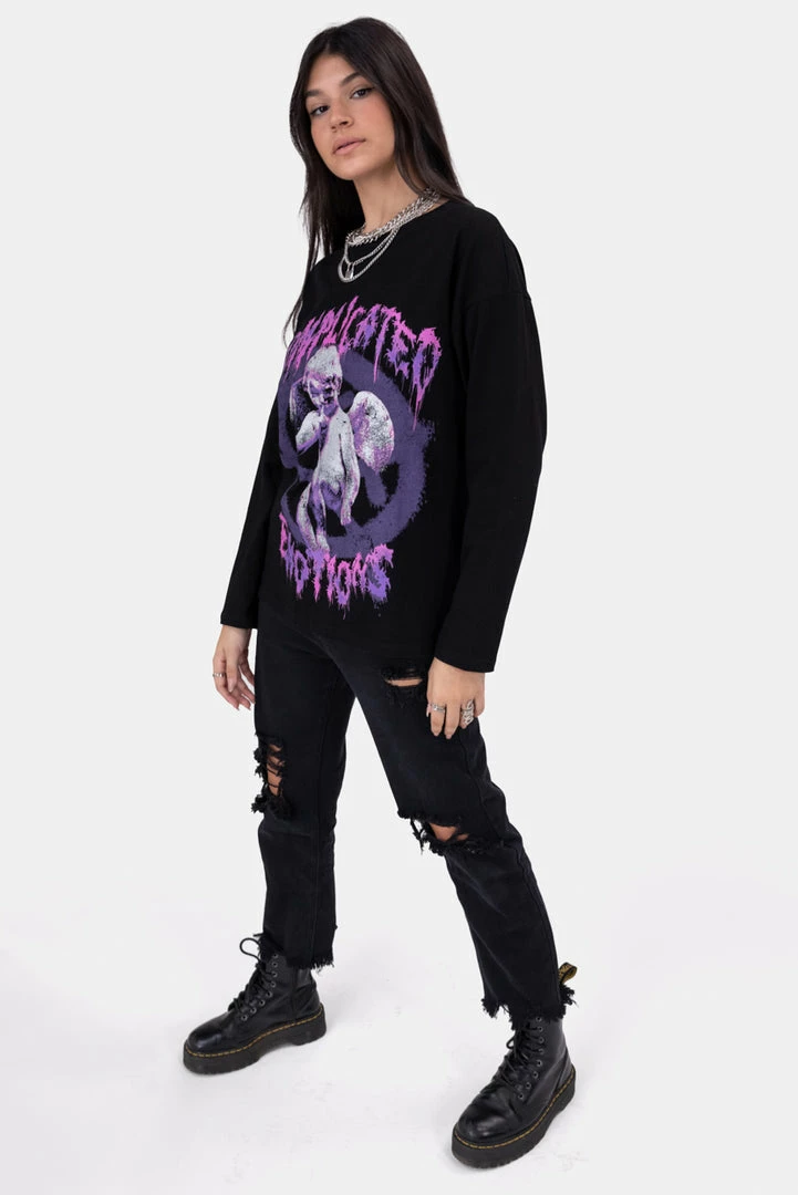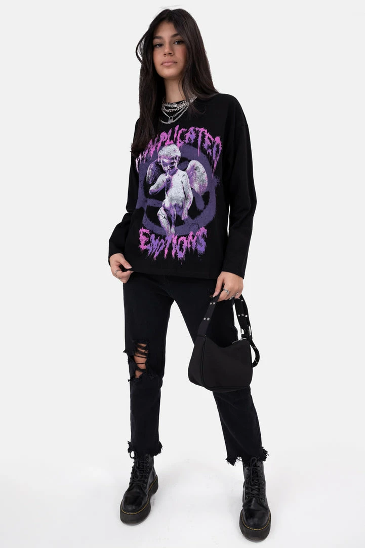 - Trust us, it’s much better being complicated rather than super boring. Light and comfy long sleeves Tee with graphic print on the front and a crewneck.