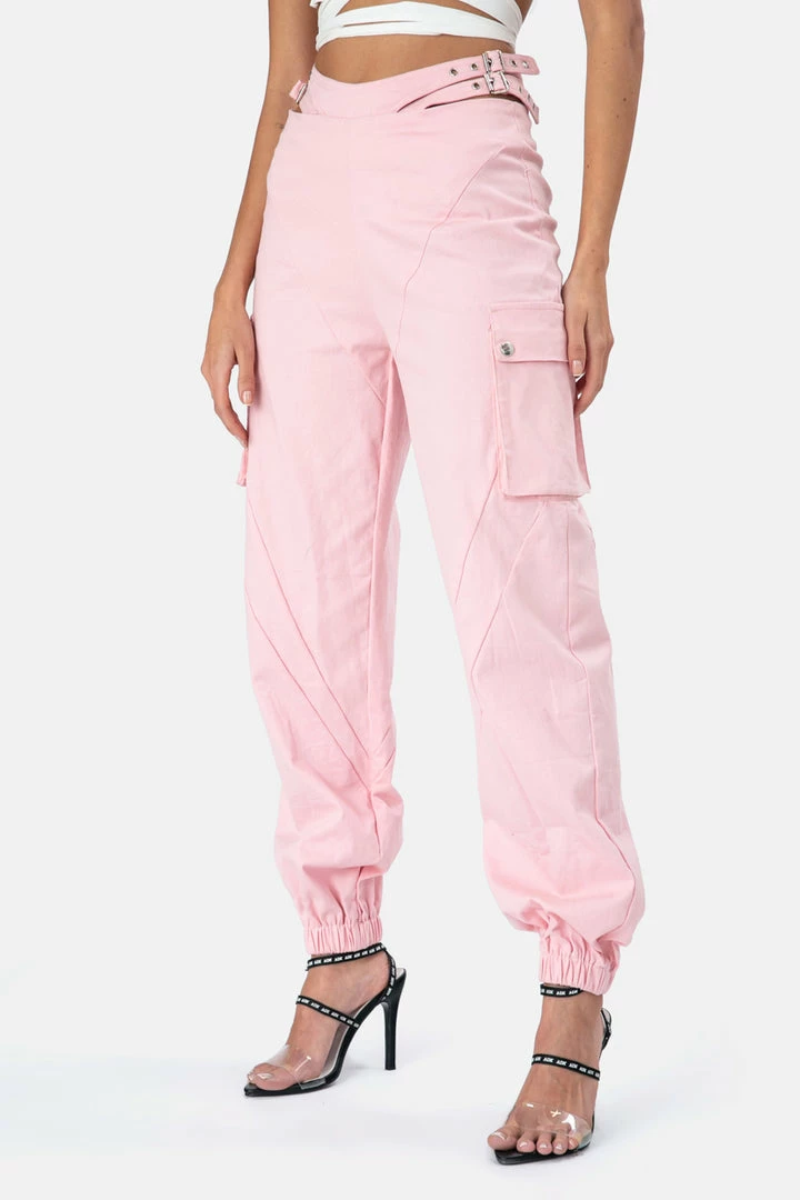 - Call up Xtina and start gettin’ rowdy! Oversize cargo pants accentuated with eyelet buckle straps at the top for a cut-out look, classic cargo pockets, subtle seemed details throughout and hidden back-zip closure