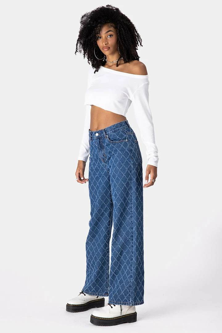 - The I’ll-take-one-of-each-color kinda top. Ribbed crop top with an elastic boat neck, long sleeves and raw-cut hem.