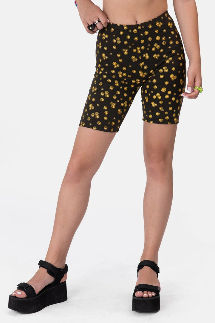 - In full bloom. Stretchy biker shorts in flower print all-over with an elastic waistband in a high waisted fit.