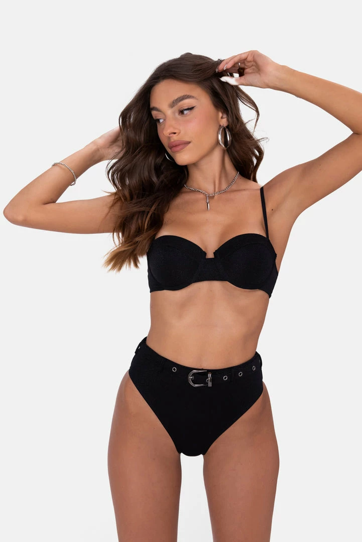 - Cuz glam is your jam. Padded and cupped bikini top in sparkly lurex with an underwire, sweetheart neckline, adjustable straps and back clasp closure.