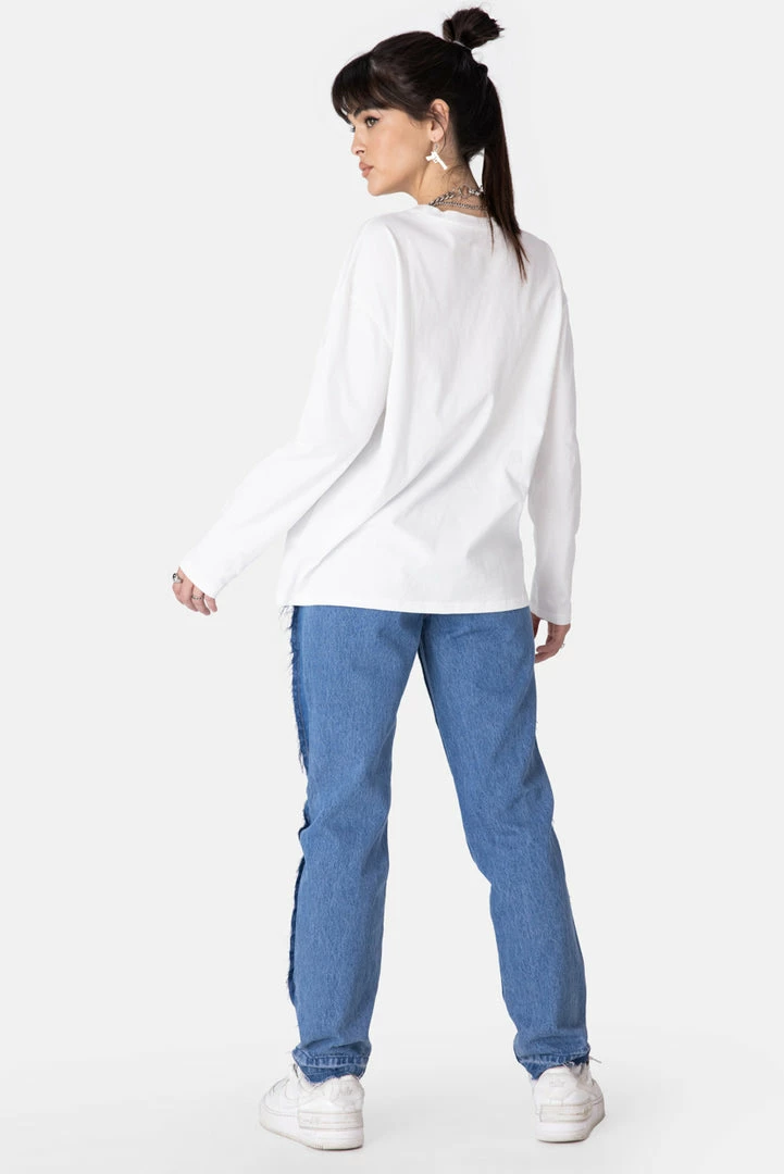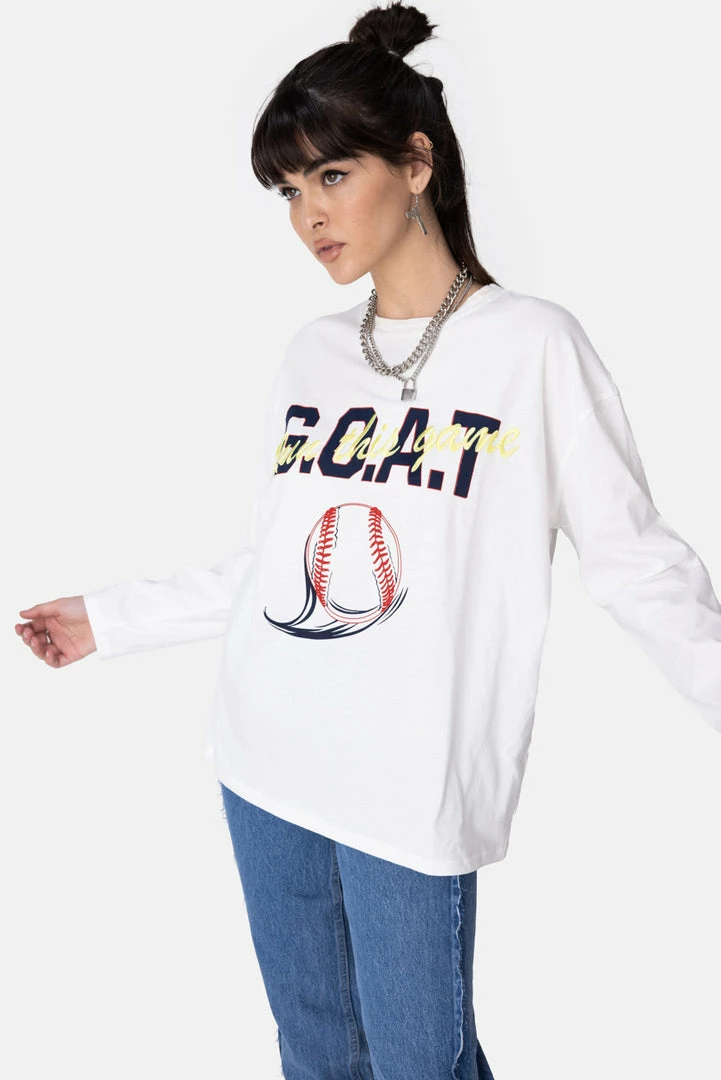 - The literal GOAT, rh. Relaxed fit t-shirt with embroidery and a graphic print, both in the front, long sleeves, dropped shoulder line and a crewneck.