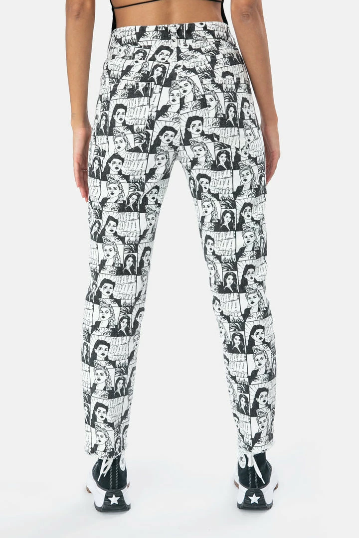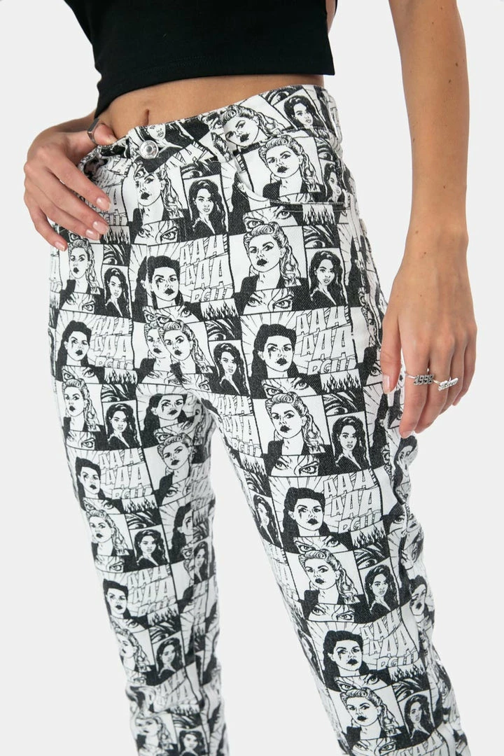 - Hit up Betty & Veronica, we’re getting oldschool! High waisted jeans in a hysteric all-over comic strip print