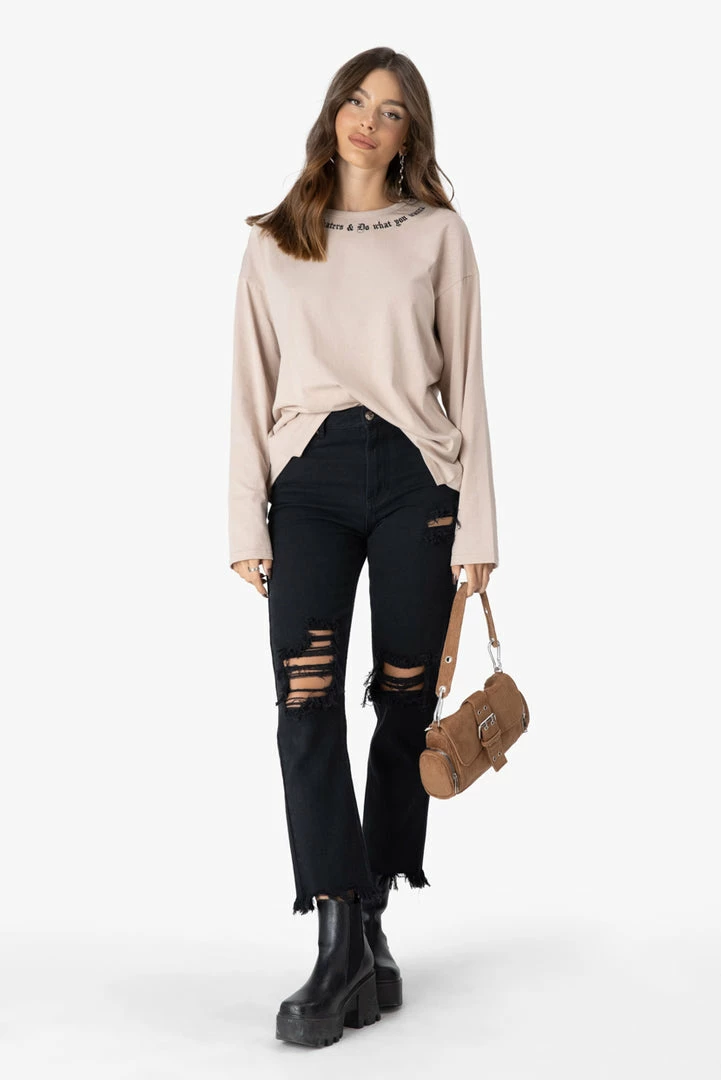 - Forget the haters & do what you wanna. Long-sleeved t-shirt with embroidery around the neck, ribbed round collar and an elasticized side detail at the hem.