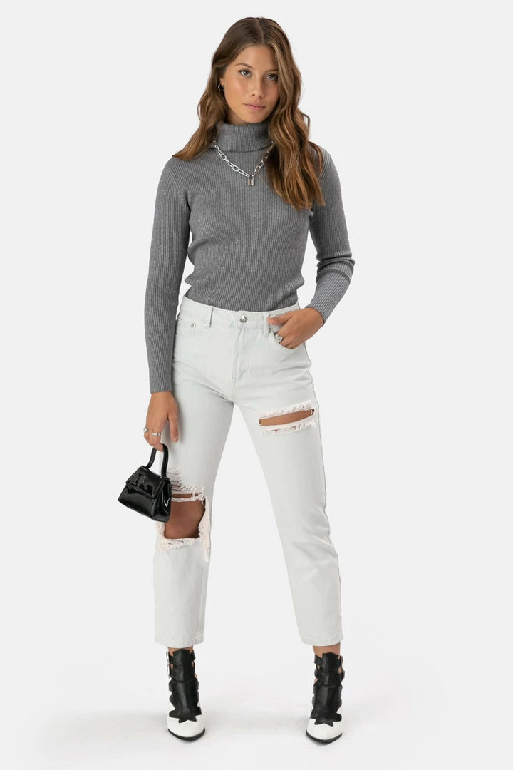 - Chunky turtlenecks are a total vibe! Long-sleeved ribbed top with a chunky turtleneck for those long, chilly days.