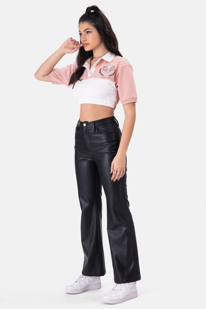 - Serve is on fleek. Cropped top in a color-block design with a classic polo collar, embroidery in the front and elastic waistband.