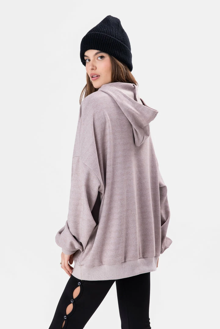 - Coziness overload. Mega-comfy rib knit hoodie in an oversized fit with typographic embroidery in the front, dropped shoulder line, kangaroo pocket and fitted outline.