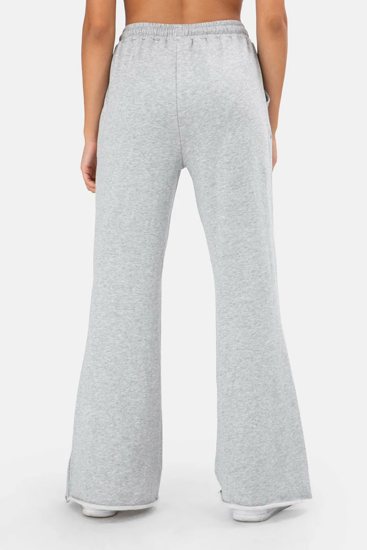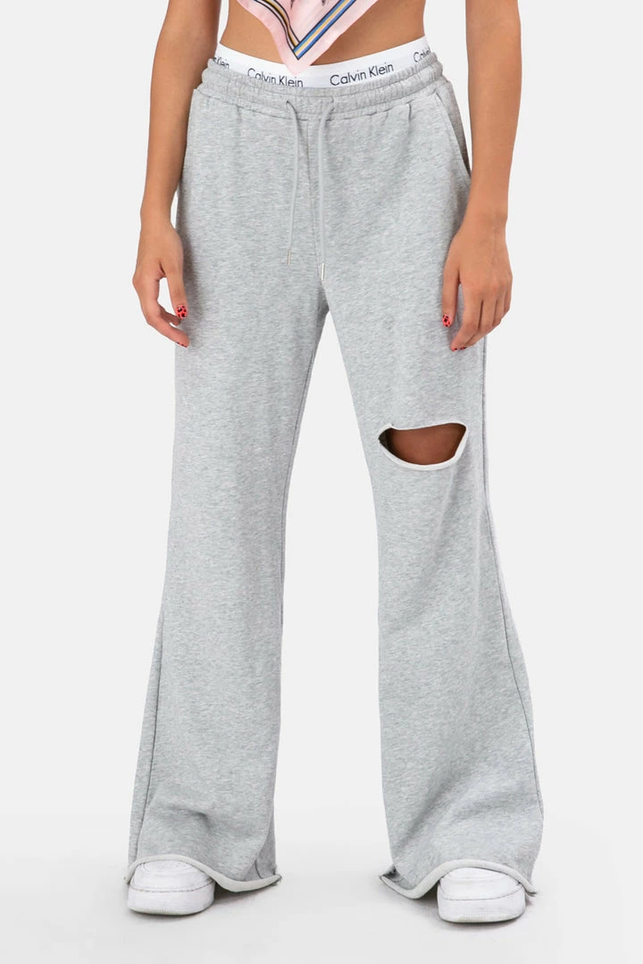 - If heaven exists, these sweatpants are there. Raw-edge, flared bottoms with a single rip at the knee taking this pair to a whole new level. With side pockets, banded waist and drawstrings.
