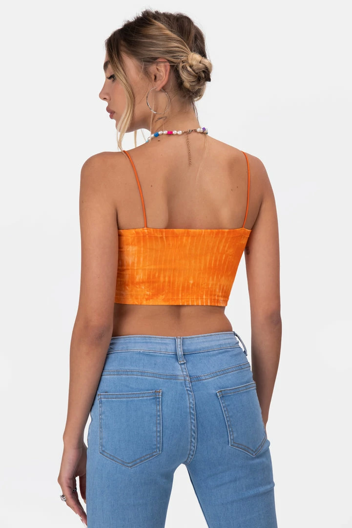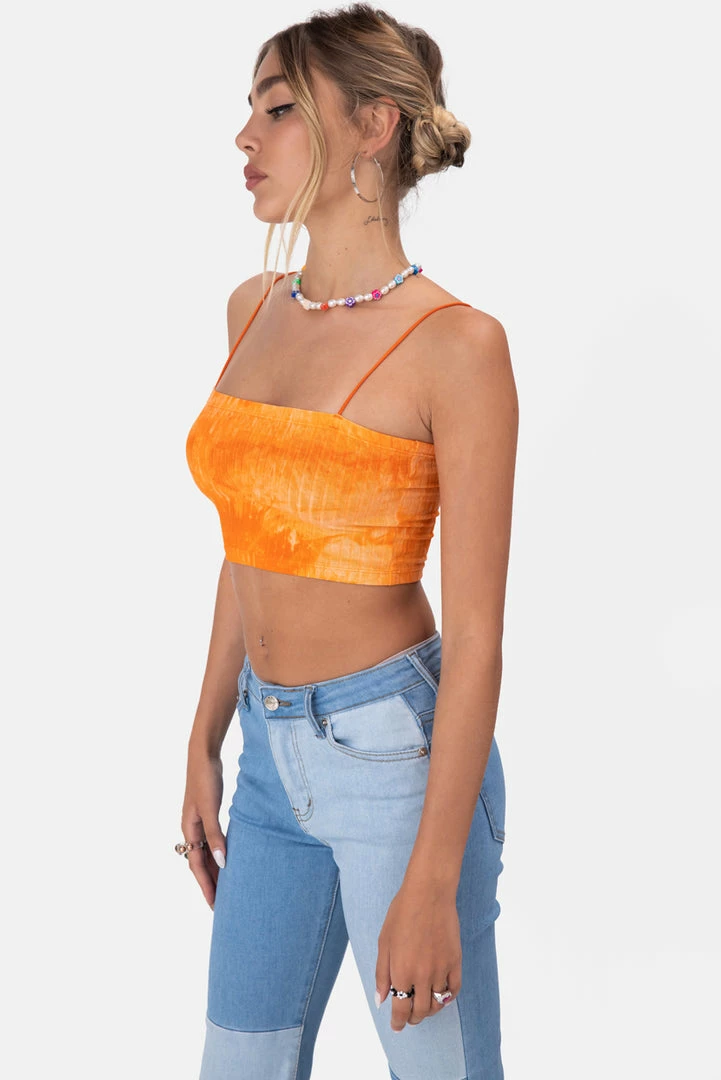 - Tie-dye is ma jam. Super cropped, tube style, ribbed top in tie-dye print all-over with thin, stretchy shoulder straps and square neckline.