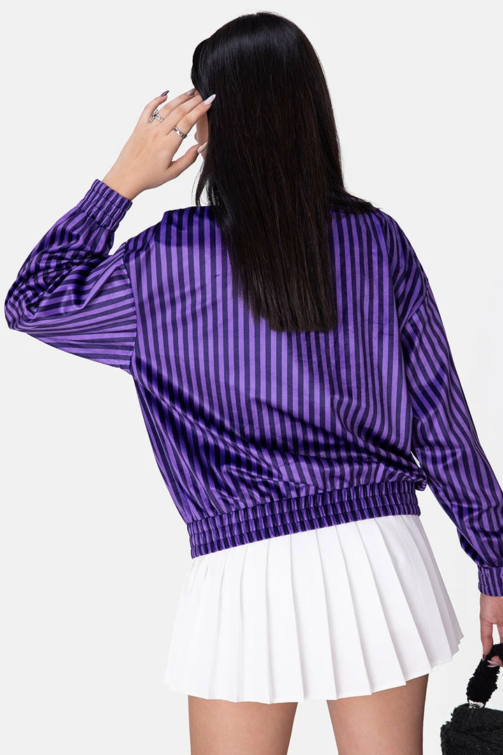 - About to give ya serious feels. Velvet sweatshirt with stripe pattern all-over, crewneck, dropped shoulder line plus both hem and cuffs fitted.