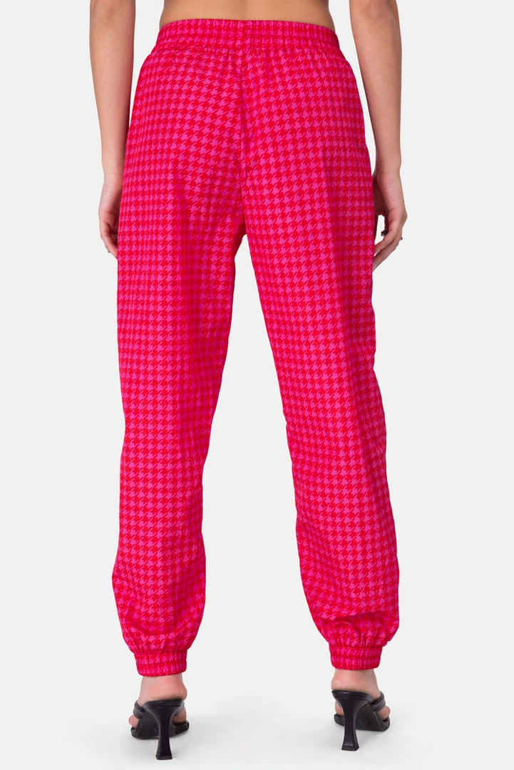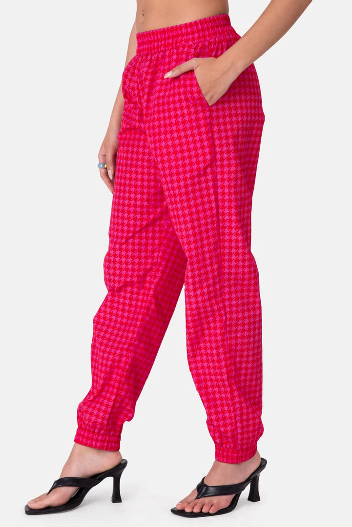 - Itโs a serious vibe. Nylon sweatpants in colorful houndstooth print all-over with an elastic waistband, side pockets and cuffed hem.