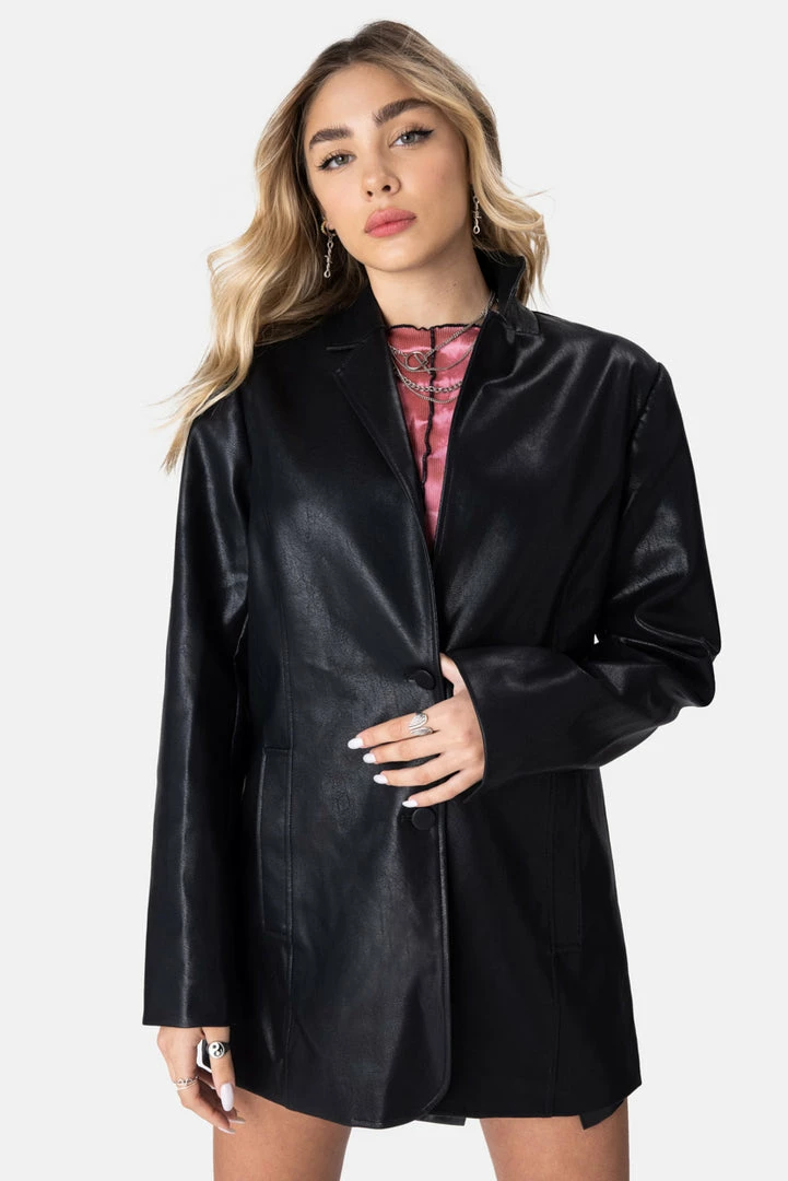 - Mark our words-the hottest fit of the season. Tailored, faux leather blazer in an oversized fit with notch lapels, button closure, side welt pockets and an inner lining.