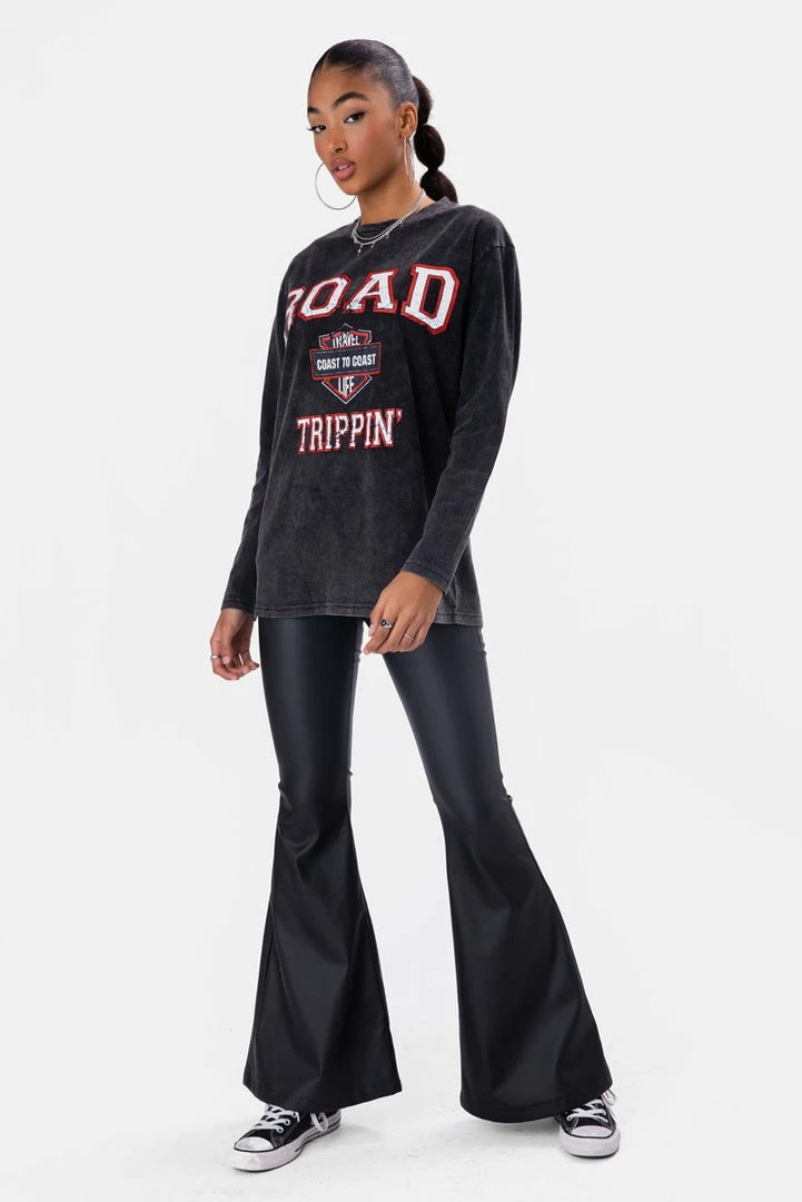 - Road trippin’ is our foreva energy. Relaxed fit T-shirt in a washed-out finish with graphic print on the front, crew neck and long sleeves.