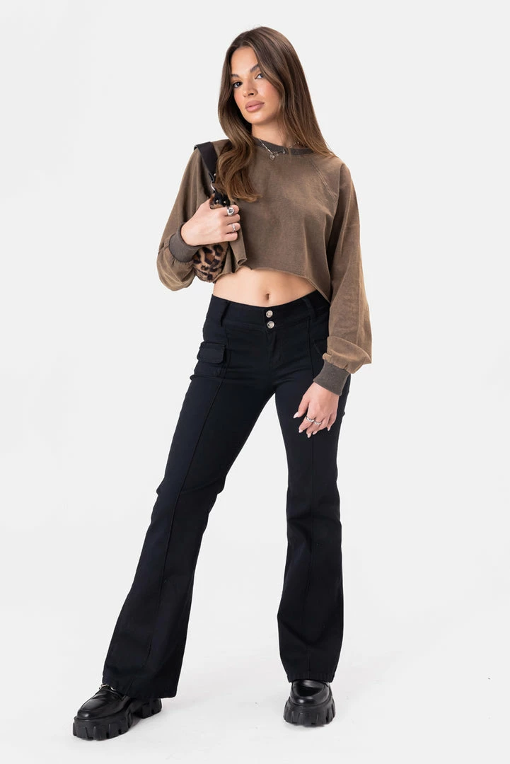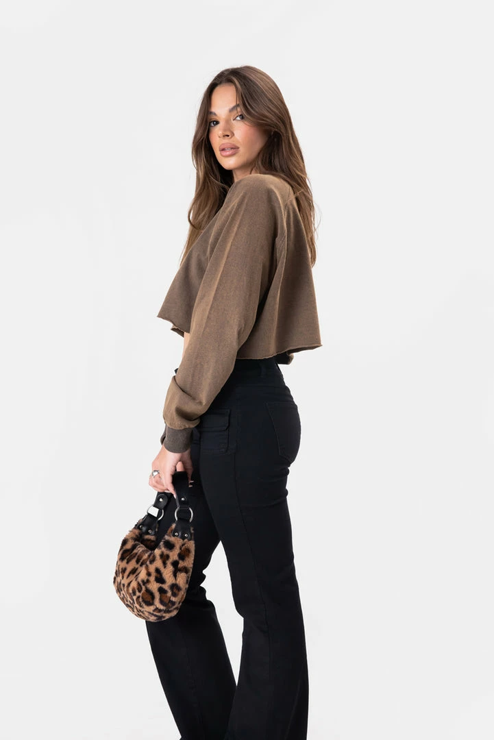 - Loosen up, hun. Washed out and cropped T-shirt in a loose fit with ribbed crewneck, long sleeves with fitted cuffs and raw-cut hem.