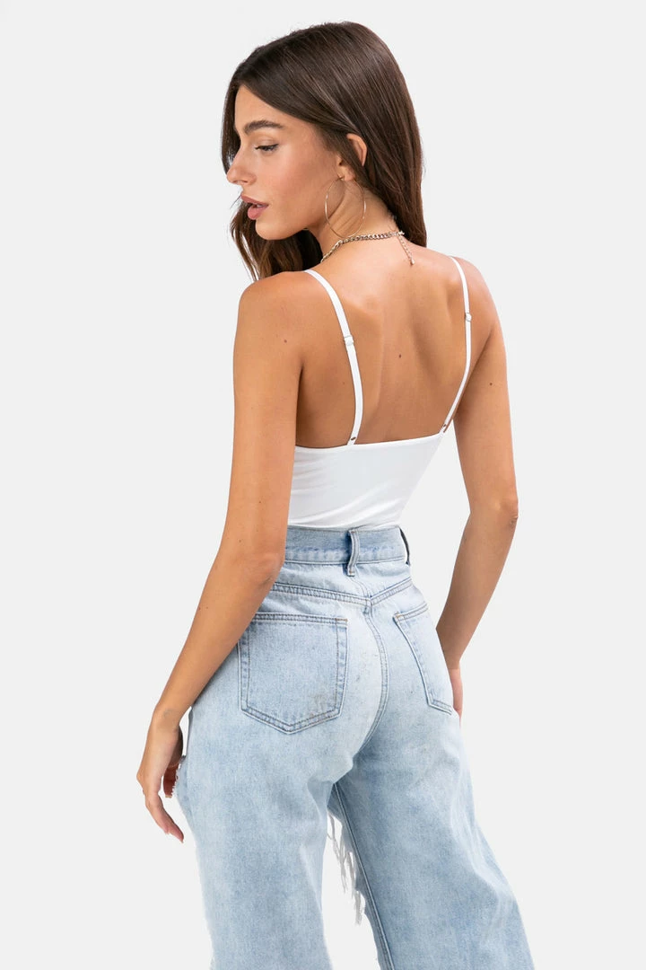 - Watch us as we turn your dreams into reality. Super-hot satin finish bodysuit featuring bra-cup detailing, adjustable spaghetti straps and hidden snap button closure. Unreal!