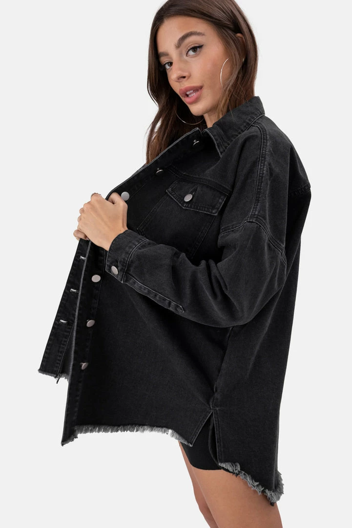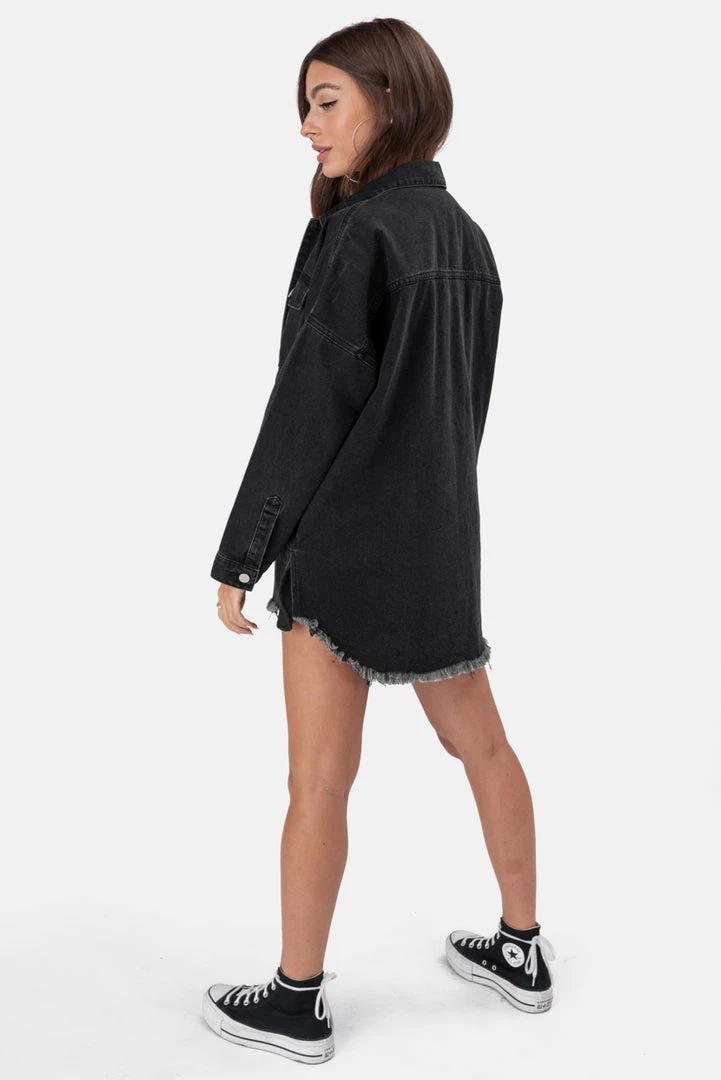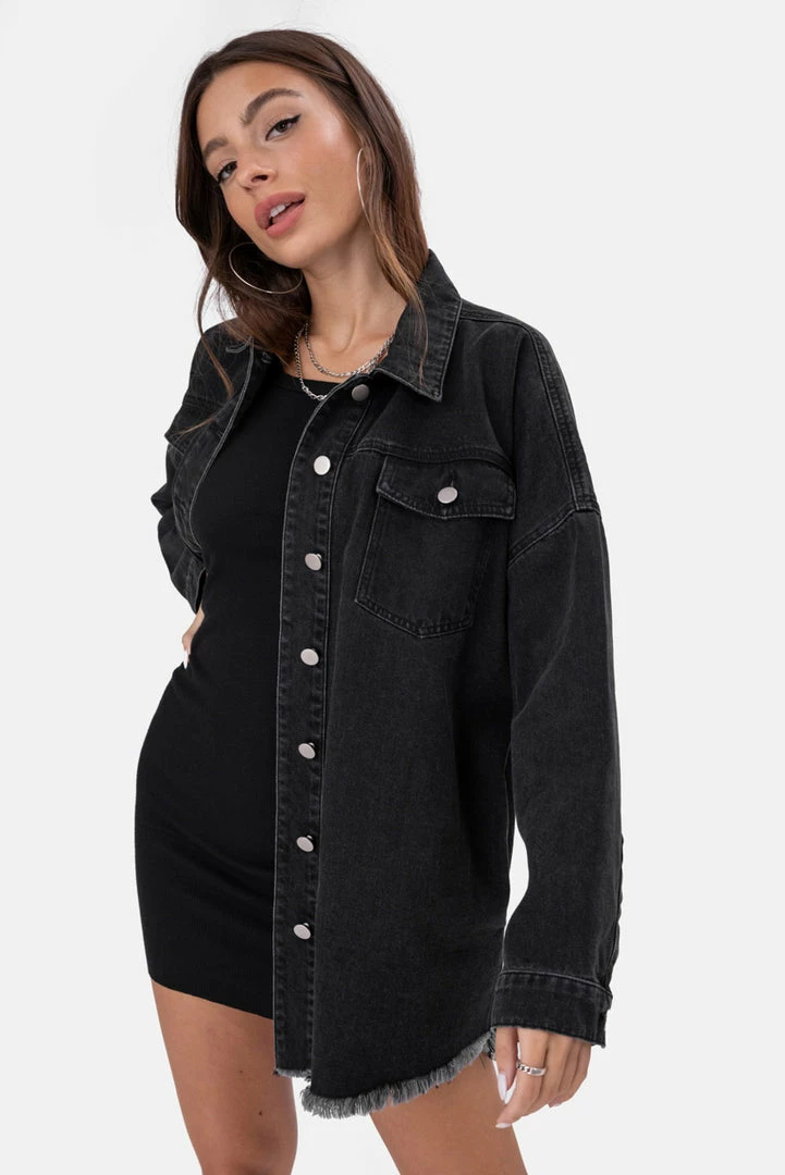- Denim for dayzzzzz. This oversized denim shirt comes with button closure, classic collar, chest flap and button pockets, button cuffs and raw-edge hem. Swagga, bby!