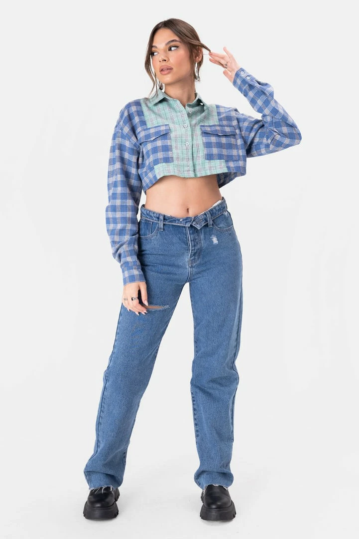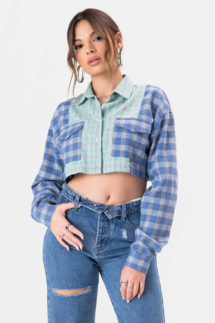 - Killin’ ya softly. This cropped shirt comes in soft flannel finish fabric with color-block, paneled design and a cropped hem. Including a classic collar, buttons closure, chest flap pockets, dropped shoulder line and button cuffs.