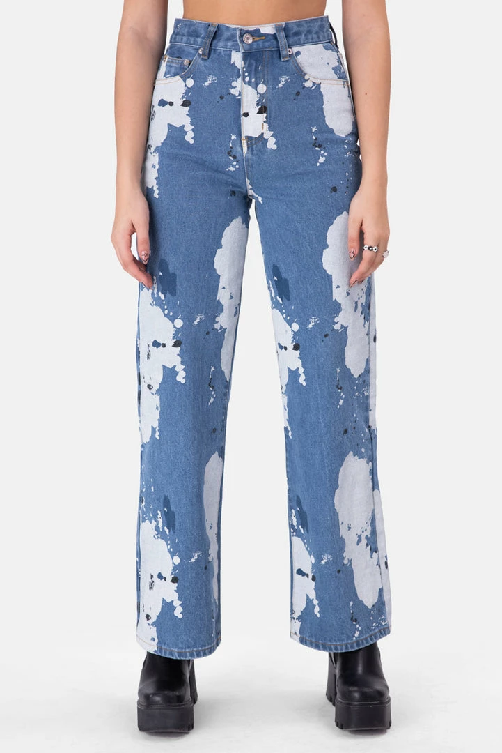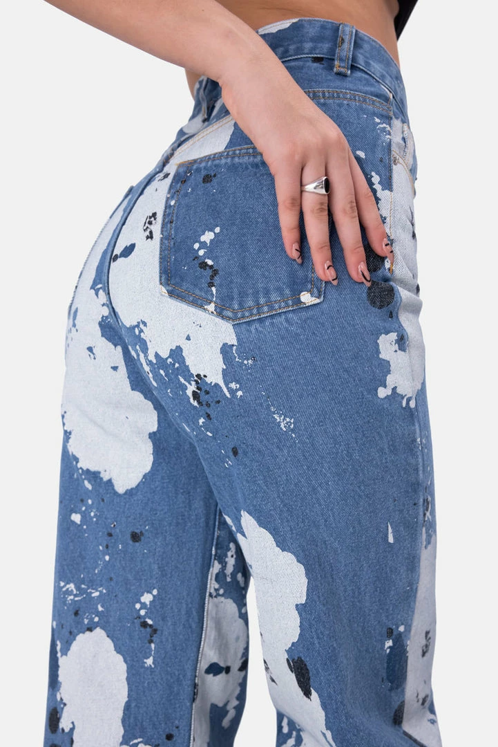 - Paint the streets with your style. High waisted, wide fit jeans with all-over paint splatter and bleached pattern, zip and button closure, belt loop and a 5 pocket design.