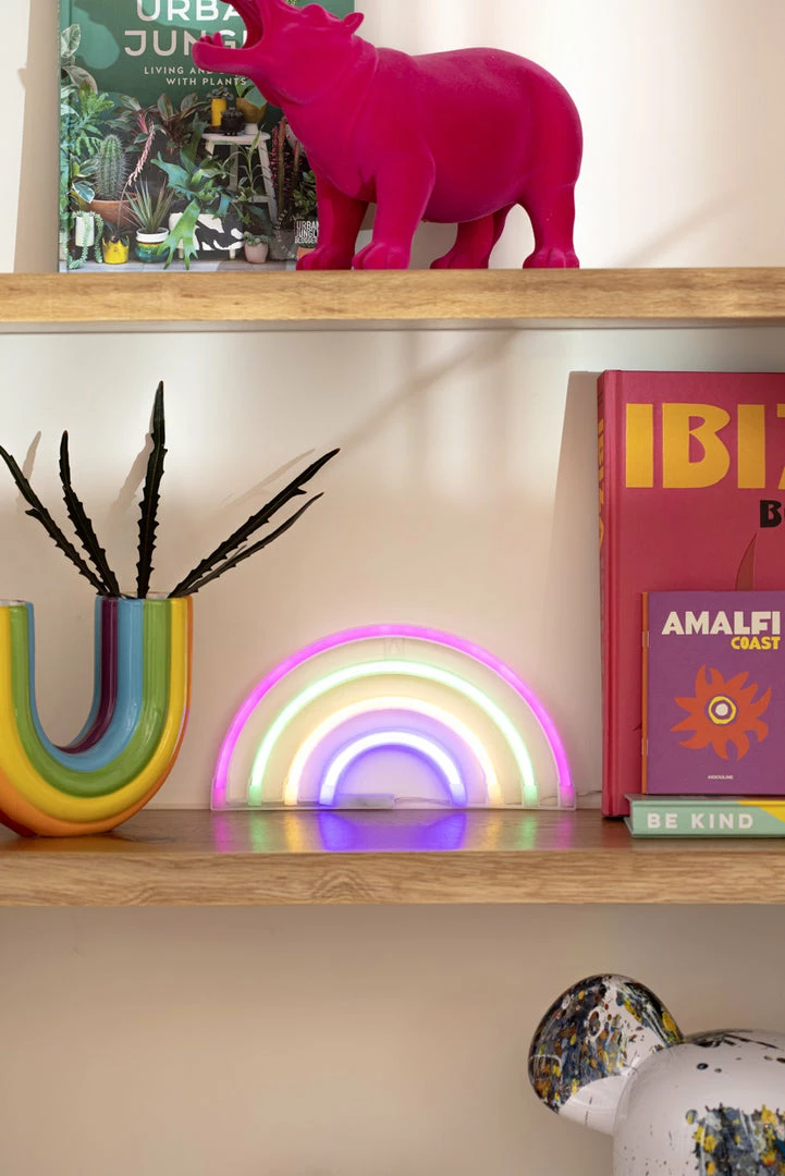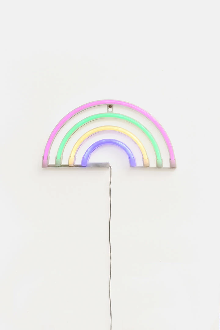 - Far, far away. Rainbow-shaped LED sign with neon lighting, powered by a USB connection or batteries.