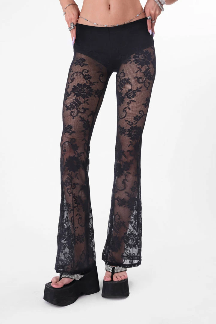 - Here for the festive vibes. Flared pants in low-rise fit and stylish lace with internal briefs and elastic waistband.