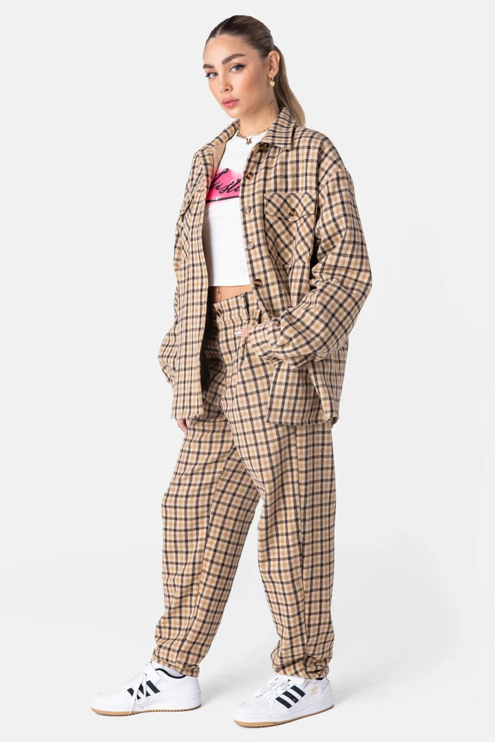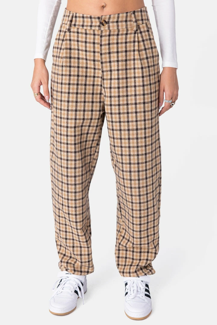 - Drip, but make it smart. Oversized, cozy flannel pants in all-over plaid print with button and zip closure, belt loops, diagonal front pockets and back patch pockets.